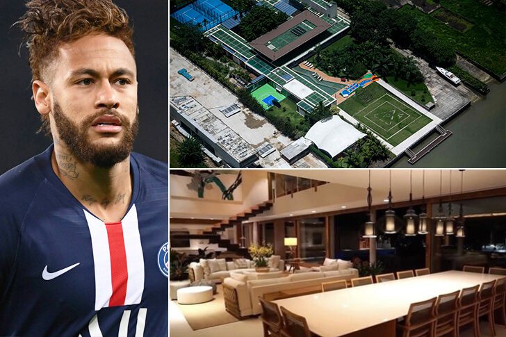 Neymar todo mundo conhece. Melhor jogador brasileiro da atualidade, atualmente joga pelo Paris Saint-Germain e pela Seleção Brasileira. Tem inúmeras casas espalhadas pelo mundo mas uma em especial é a super mansão que ele possui no Rio de Janeiro, mais precisamente em Mangaratiba no condomínio Portobello.O imóvel de 5 mil m2 tem seis suítes, campo de futebol, piscina gigantesca, pista de dança e heliponto. Neymar também está construindo um puxadinho com dez suítes para hospedar os parças.