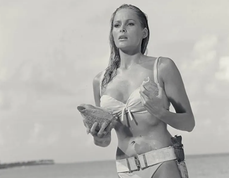 Ursula Andress, a Swiss-German actress, starred as Honey Rider in the 1962 James Bond film “Dr. No.” Honey is a local shell diver who sells seashells from Jamaica to dealers in Miami.