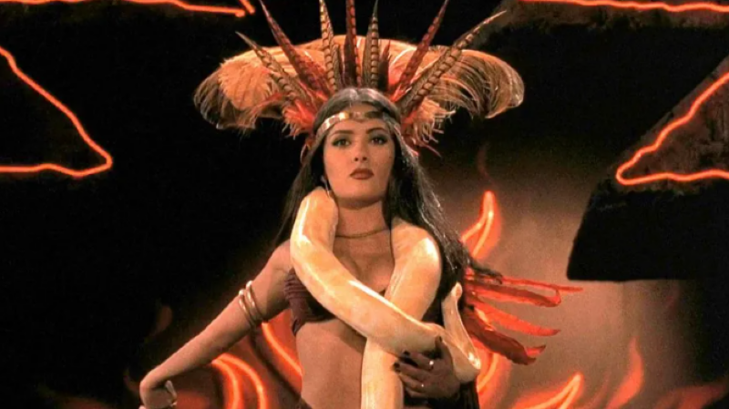 Salma Hayek portrays Santanico Pandemonium, a seductive and dangerous vampire, in the 1996 film From Dusk Till Dawn.