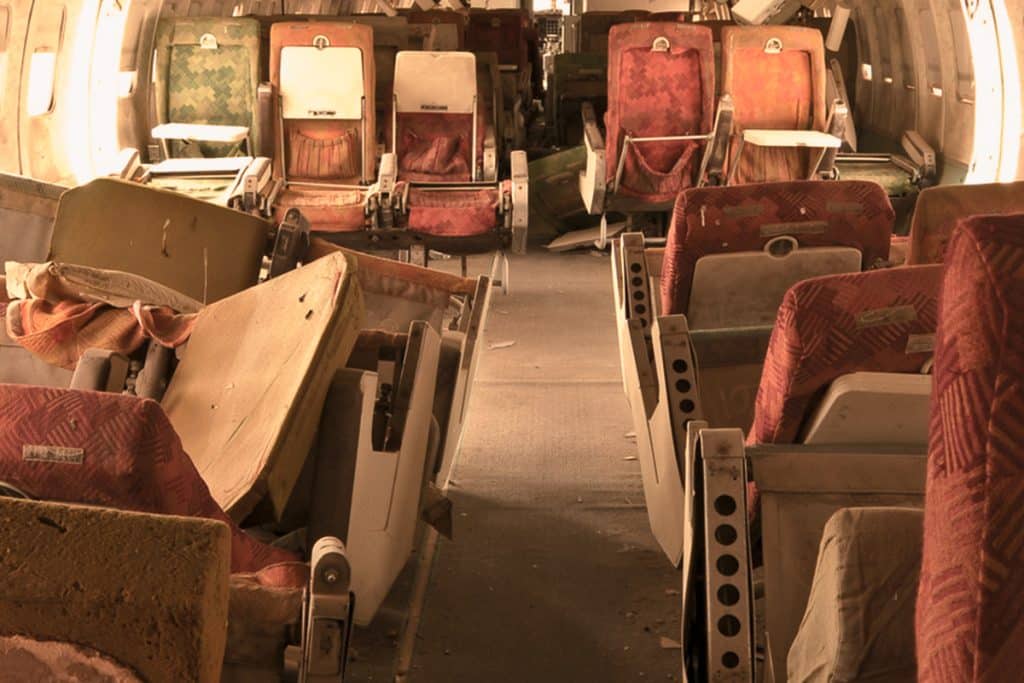 Rows of numbered seats confirmed the plane’s purpose. “A passenger plane,” Rick reported via walkie-talkie. They soon found a serial number on a chair, dating back to 1970.