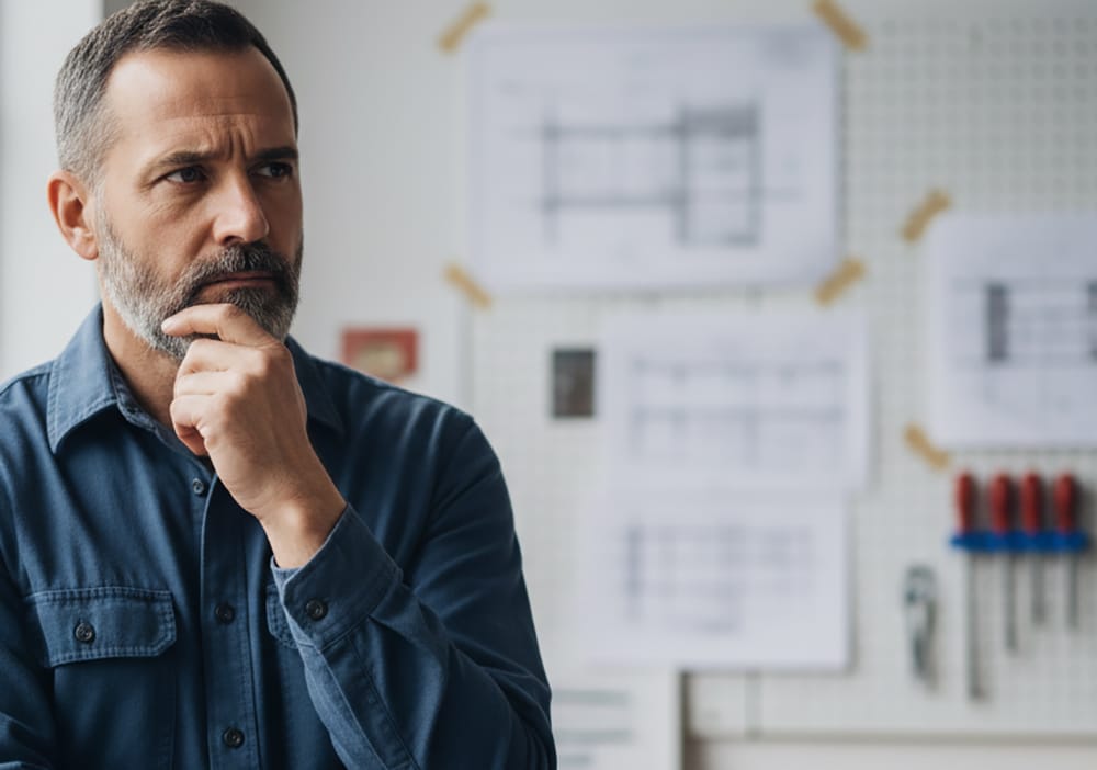 Bill’s grip on the tire lever loosened just a little, his shoulders dropping as some of the anger faded from his face. He looked over at Frank and his boss, then glanced at the blueprints pinned to the wall.