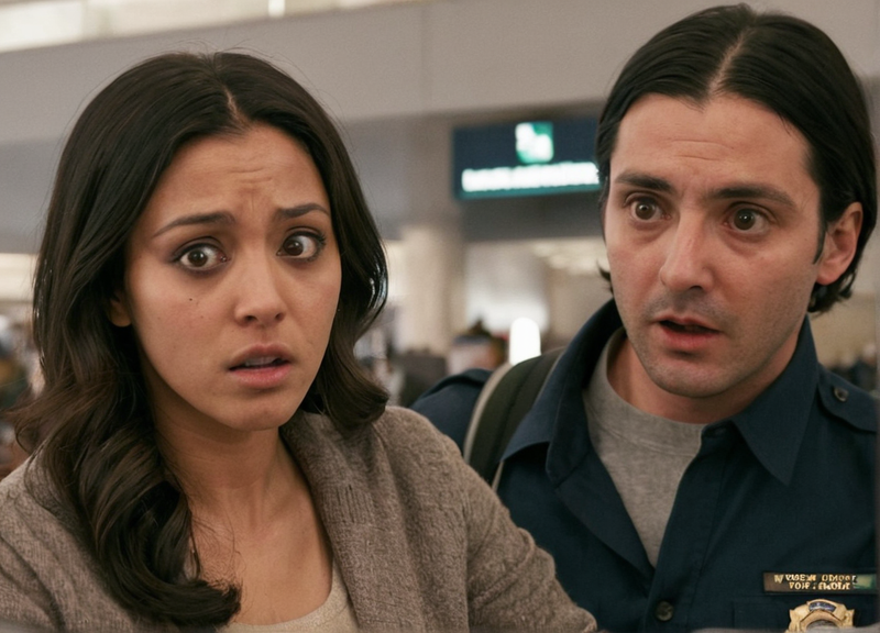Security officers engaging them, checking their luggage piece by piece. They tried to protest but were met with stern looks and unwavering authority.