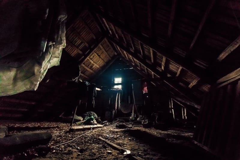 His flashlight bounced over the disorganized interior as he searched for the source of the barking.