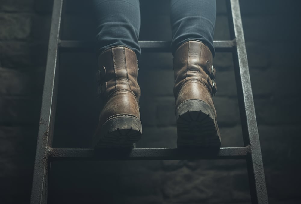 They moved carefully so they wouldn’t slip on the ladder’s worn metal rungs.