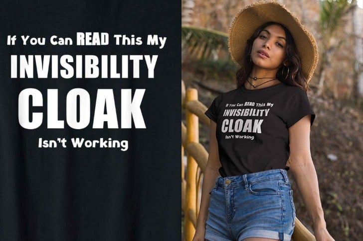 Immediately, this shirt triggers a delightful stroll down memory lane to the enchanting world of Harry Potter. Rather than an ordinary garment, this shirt becomes a humorous homage to the iconic Invisibility Cloak, a pivotal item in J.K. Rowling’s saga.