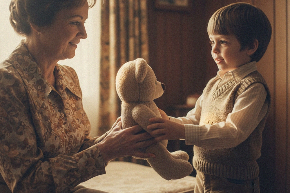 He told Laura that when he was a child, he had a teddy bear just like this one. It had a blue star stitched by his grandmother, who gave it to him for his fifth birthday.