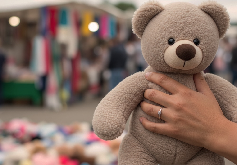 It was just a cute bear, and Laura was contemplating making the bear her first and probably only purchase at this flea market.