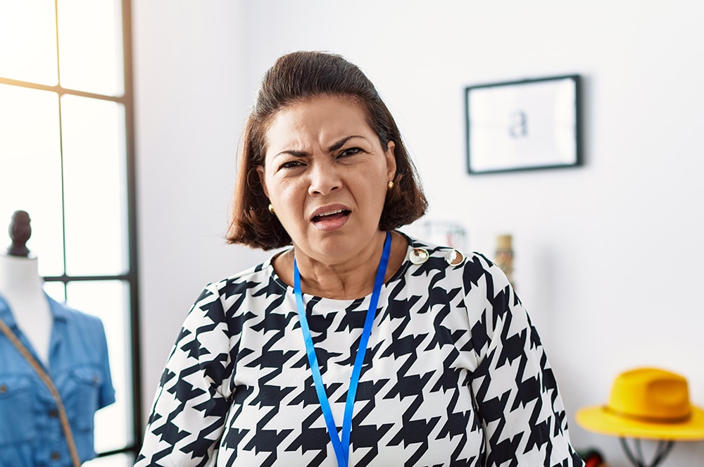 After a minute, the clerk seemed genuinely disturbed by something. She looked up at Anna, her brow furrowed deeply.